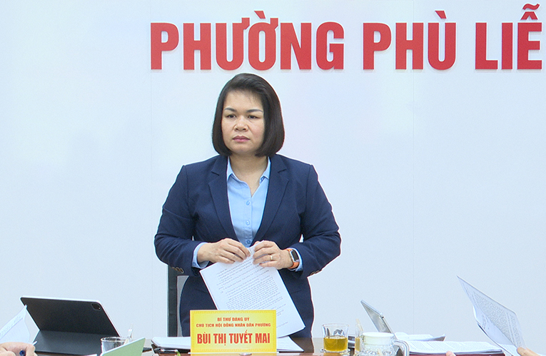 Đồng chí Bùi Thị Tuyết Mai – Bí thư Đảng ủy, Chủ tịch HĐND phường, Chủ tịch Uỷ ban bầu cử phường phát biểu kết luận hội nghị