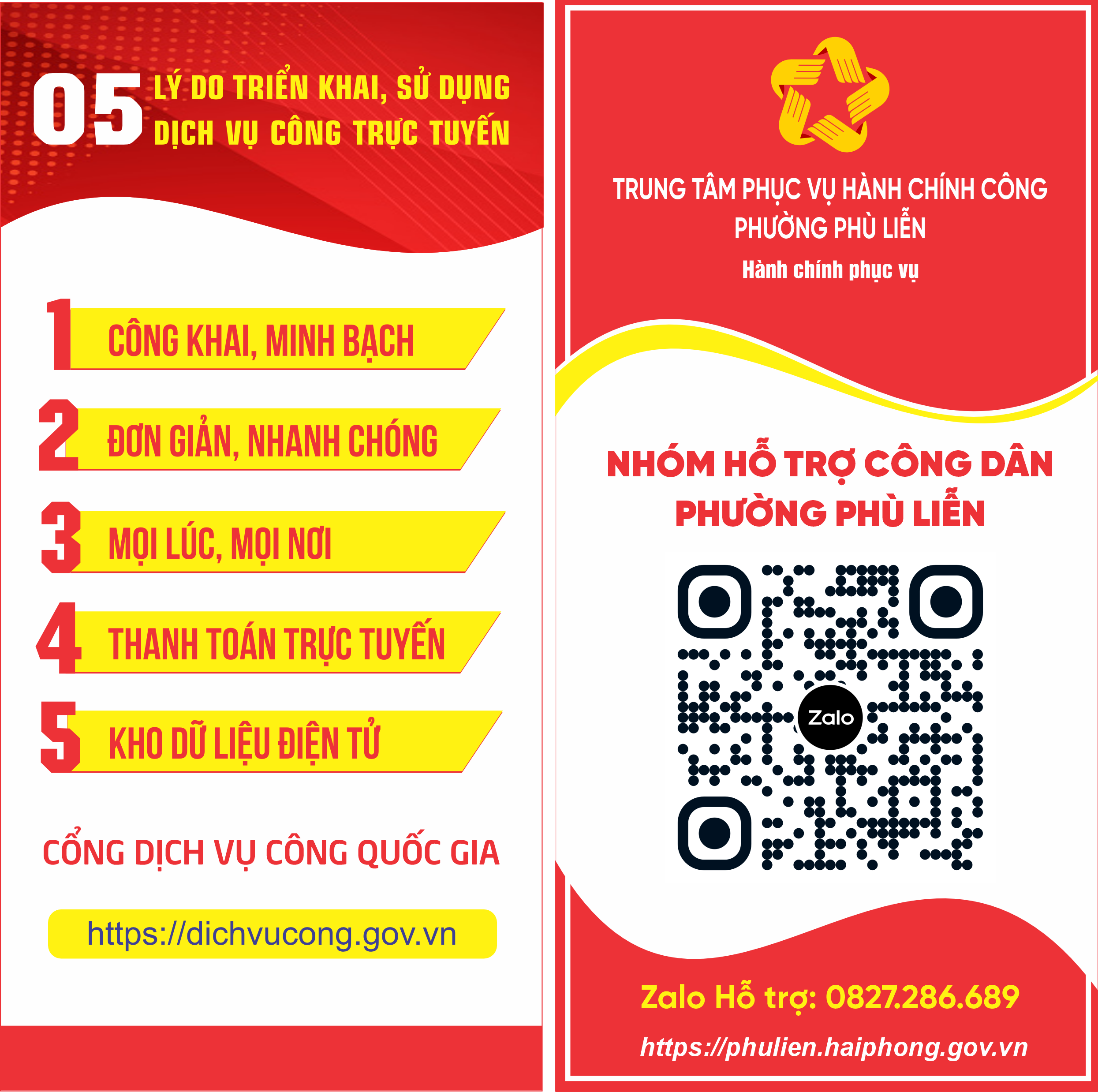 Tờ rơi tuyên truyền Dịch vụ công trực tuyến phường Phù Liễn