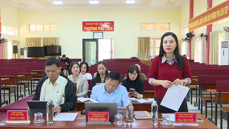 Đồng chí Hoàng Thị Minh Thúy – Uỷ viên Ban Thường vụ Đảng ủy, Chủ tịch Ủy ban Mặt trận Tổ quốc Việt Nam phường tờ trình của Ban Thường trực Uỷ ban Mặt trận Tổ quốc Việt Nam phường về dự kiến về cơ cấu, thành phần và phân bổ số lượng người được giới thiệu ứng cử đại biểu HĐND phường nhiệm kỳ 2026 – 2031