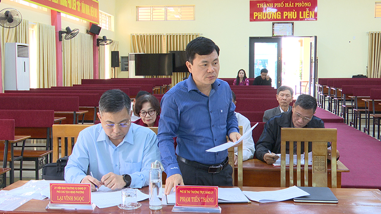 Đồng chí Phạm Tiến Thắng - Phó Bí thư Thường trực Đảng ủy phường phát biểu tại hội nghị