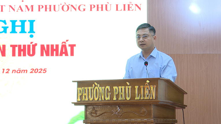 Đồng chí Lại Vĩnh Ngọc - Uỷ viên Ban Thường vụ Đảng ủy, Phó Chủ tịch HĐND phường trình bày thông báo của HĐND phường về dự kiến về cơ cấu, thành phần và phân bổ số lượng người được giới thiệu ứng cử đại biểu HĐND phường nhiệm kỳ 2026 – 2031