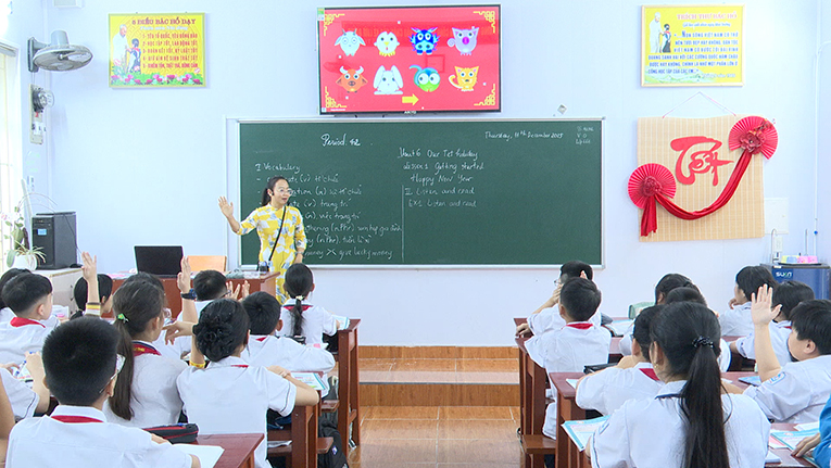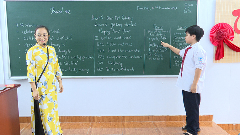 Ở bộ môn Tiếng Anh lớp 6, cô giáo Nguyễn Thị Hoa (lớp 6D6) triển khai tiết dạy “Unit 6: Our Tet Holiday – Lesson 1: Getting Started”, mang đến không khí học tập nhẹ nhàng, gần gũi. Thông qua chủ đề Tết – nét văn hóa giàu bản sắc của người Việt – học sinh vừa phát triển kỹ năng ngôn ngữ, vừa hiểu thêm về phong tục truyền thống. Cách tổ chức tiết học hướng hoạt động giúp học sinh tham gia tích cực, tăng khả năng tương tác bằng tiếng Anh.