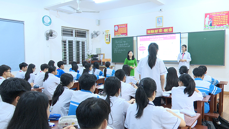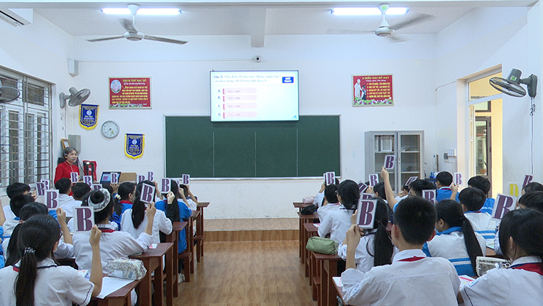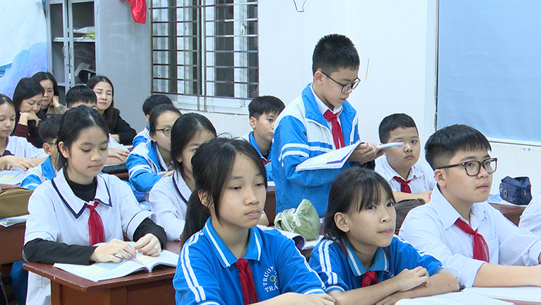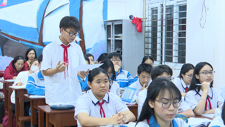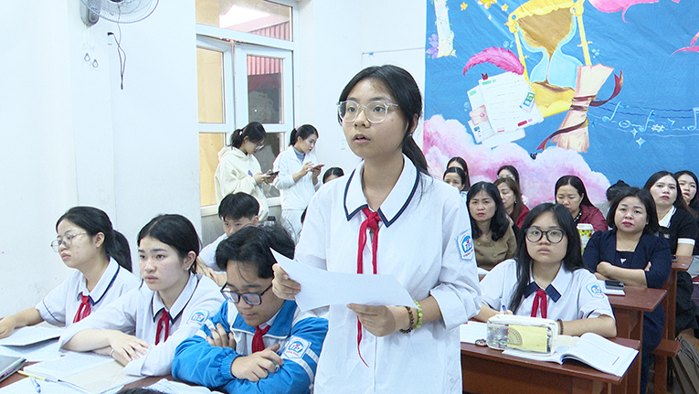 Trong khi đó, tiết Ngữ văn lớp 9 của cô Đào Thị Minh Hồng và lớp 9A1 đi vào nội dung viết bài nghị luận về một vấn đề cần giải quyết trong đời sống học đường. Với yêu cầu phát huy tư duy phản biện và kỹ năng lập luận, tiết học giúp học sinh nhìn nhận sâu hơn các vấn đề thực tế quanh mình, biết đặt câu hỏi, phân tích và đề xuất giải pháp – năng lực cốt lõi trong chương trình giáo dục mới.