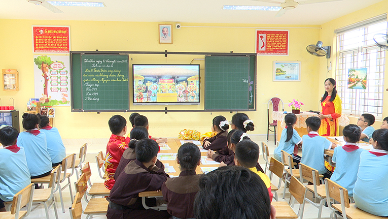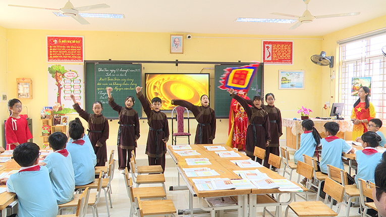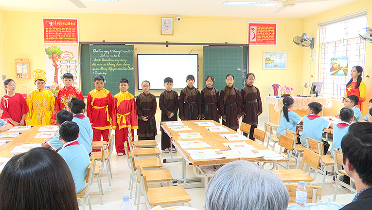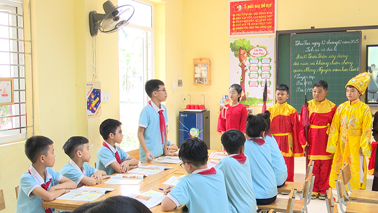 Cô giáo Bùi Hải Yến cùng lớp 5A3 thực hiện tiết dạy minh họa môn Lịch sử và Địa lí lớp 5 với nội dung “Bài 10: Triều Trần xây dựng đất nước và kháng chiến chống quân Mông – Nguyên xâm lược (Tiết 4)”