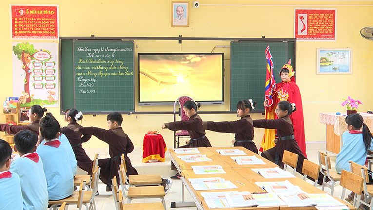 Một nội dung được các đại biểu đánh giá cao là việc lồng ghép giáo dục lịch sử địa phương một cách tự nhiên, phù hợp trong tiết dạy. Ở phần vận dụng, học sinh đã giới thiệu di tích lịch sử Đình Đẩu Sơn – di tích lịch sử kháng chiến cấp thành phố, nơi thờ ngũ vị Thần tướng Thành Hoàng: Trần Nhội, Trần Phương, Nguyễn Chính, Tô Phong và Trần Văn Bích, những vị tướng có công trong các cuộc kháng chiến thời Trần, bảo vệ quê hương và đất nước.