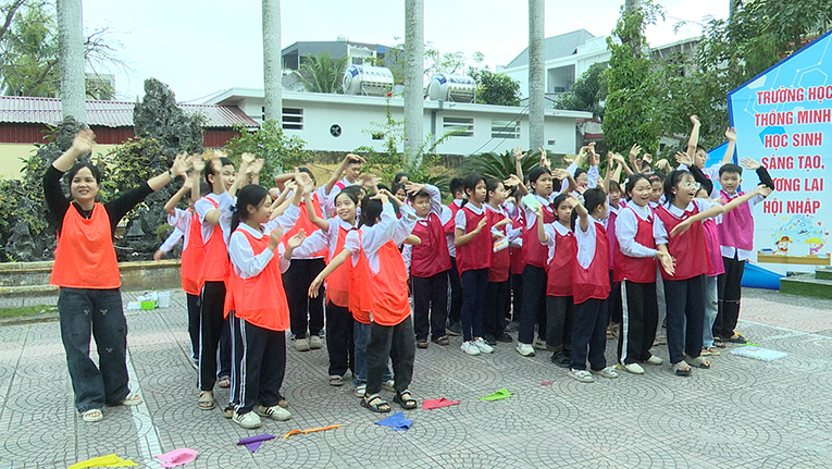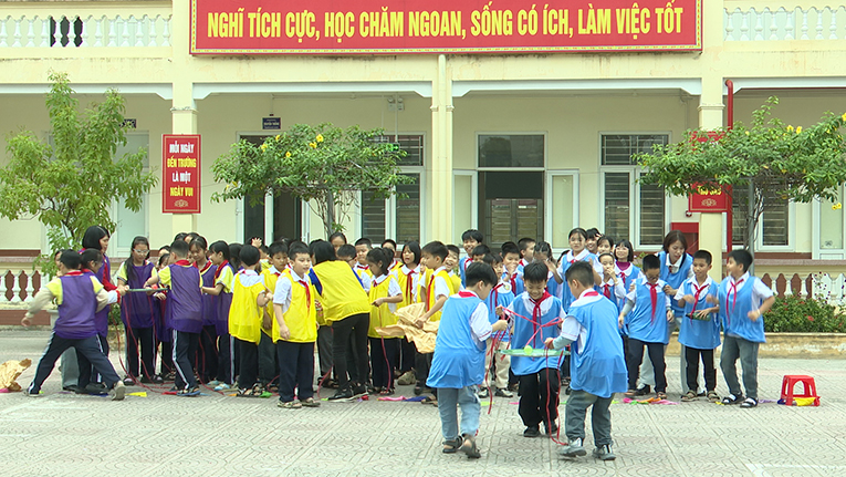 Phần cuối chương trình, các đội tham gia thi ghép hình bản đồ Việt Nam. Hoạt động kết hợp vận động và tư duy đã tạo nên không khí hào hứng, giúp học sinh rèn luyện khả năng quan sát, ghi nhớ, đồng thời bồi dưỡng tình cảm yêu quê hương đất nước.