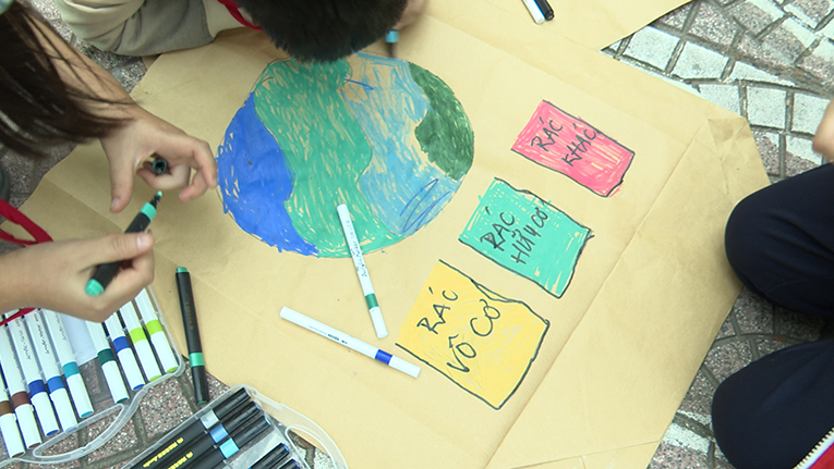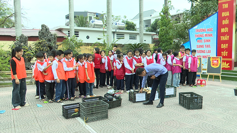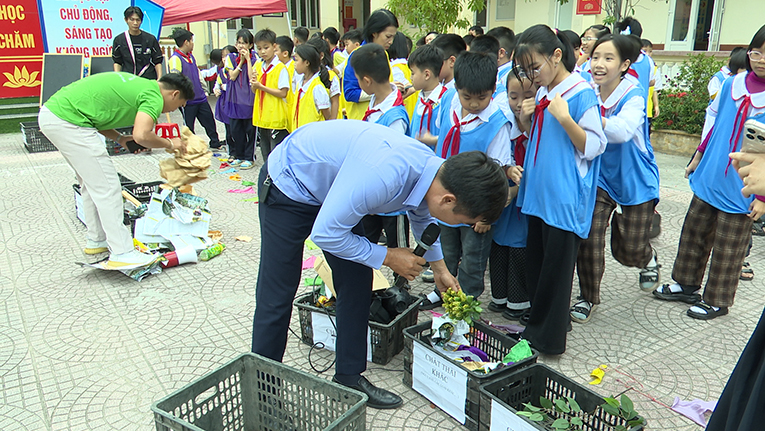 Trường Tiểu học Lý Tự Trọng tổ chức tuyên truyền phân loại chất thải rắn sinh hoạt tại nguồn với chủ đề “Học sinh xanh – Trường học xanh – Hành động xanh”