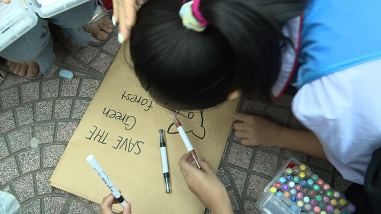 Ở phần tái chế giấy, sân trường trở nên nhộn nhịp khi các đội cùng sáng tạo sản phẩm từ giấy cũ. Những chiếc túi giấy nhỏ được trang trí cẩn thận, mang thông điệp sống xanh, thể hiện sự khéo léo và khả năng tiếp cận đúng tinh thần “giảm thiểu – tái sử dụng – tái chế”.
