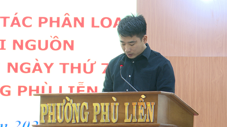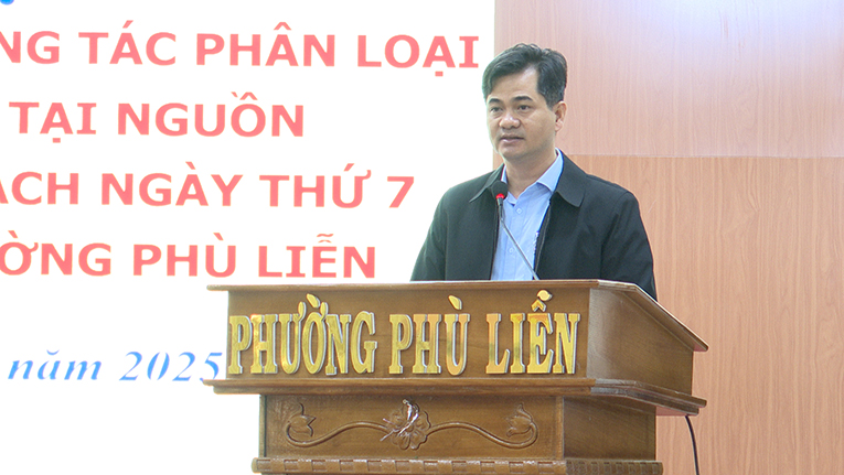 Đồng chí Nguyễn Thanh Hùng – Phó Trưởng phòng Kinh tế, Hạ tầng và Đô thị triển khai Quy chế phối hợp trong công tác phân loại chất thải rắn sinh hoạt tại nguồn và lễ ra quân thực hiện Kế hoạch số 111/KH-UBND ngày 31/10/2025 của UBND phường về việc triển khai thực hiện “Ngày thứ 7 cùng dân” trên địa bàn phường Phù Liễn