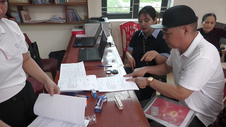 Quang cảnh buổi chi trả tại nhà văn hóa tổ dân phố Vinh Quang