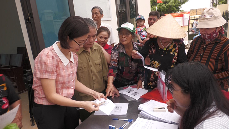 Chi trả tiền bồi thường, hỗ trợ cho các hộ dân có đất thuộc diện thu hồi thực hiện dự án đường nối Quốc lộ 5 – Quốc lộ 10 tại Nhà Văn hóa tổ dân phố Vinh Quang