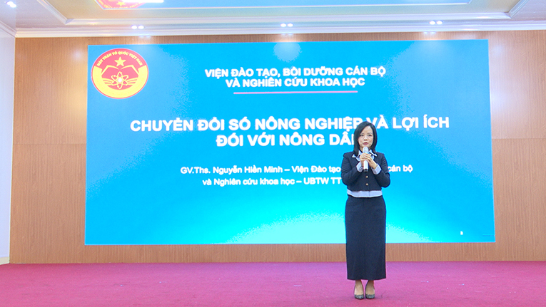 Đồng chí Thạc sĩ Nguyễn Hiền Minh – giảng viên Viện Đào tạo, Bồi dưỡng cán bộ và nghiên cứu khoa học, Ủy ban Trung ương Mặt trận Tổ quốc Việt Nam truyền đạt nội dung tập huấn