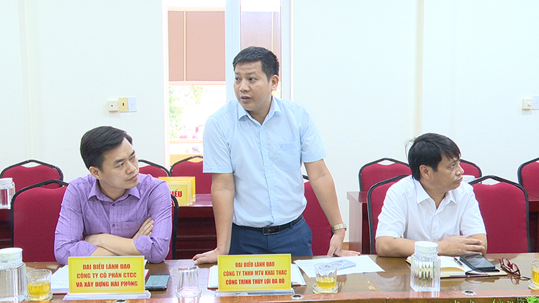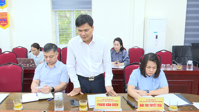 Đồng chí Phạm Văn Diện – Phó Bí thư Đảng ủy, Chủ tịch UBND phường báo cáo việc bàn giao, sử dụng vườn hoa Phù Liễn và thực tế hệ thống kênh mương thủy lợi trên địa bàn phường