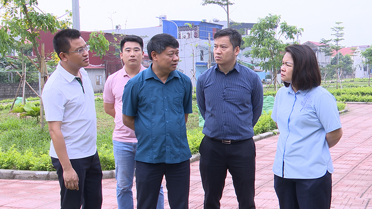 Đồng chí Phạm Văn Khanh – Uỷ viên Thành ủy, Trưởng Ban Đô thị HĐND thành phố và các đồng chí lãnh đạo phường khảo sát thực tế vườn hoa Phù Liễn