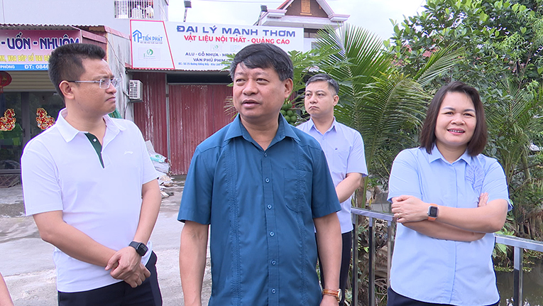 Đồng chí Phạm Văn Khanh – Uỷ viên Thành ủy, Trưởng Ban Đô thị HĐND thành phố và các đồng chí lãnh đạo phường khảo sát thực tế hệ thống kênh mương thủy lợi trên địa bàn phường