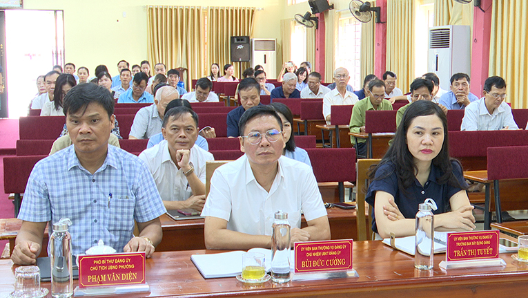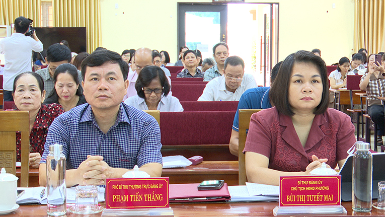 Đại biểu phường có đồng chí Bùi Thị Tuyết Mai - Bí thư Đảng ủy, Chủ tịch HĐND phường; đồng chí Phạm Tiến Thắng - Phó Bí thư Thường trực Đảng uỷ phường; đồng chí Phạm Văn Diện - Phó Bí thư Đảng uỷ, Chủ tịch UBND phường. Tham dự có các đồng chí Uỷ viên Ban Thường vụ, lãnh đạo HĐND, UBND, Uỷ ban Mặt trận Tổ quốc Việt Nam phường, lãnh đạo các phòng, ban, đơn vị, các tổ chức chính trị - xã hội phường; Bí thư các chi bộ trên địa bàn.