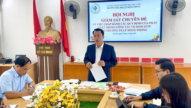 Tại buổi giám sát, đồng chí Bùi Lâm Hiển – Phó Trưởng Ban Văn hóa - Xã hội HĐND phường ghi nhận nỗ lực của nhà trường trong việc bảo đảm bữa ăn an toàn, đủ dinh dưỡng cho học sinh. Đồng chí đề nghị tiếp tục nâng cao nhận thức cho cán bộ, giáo viên về an toàn vệ sinh thực phẩm; tuân thủ nghiêm quy đinh về đảm bảo an toàn thực phẩm, kiểm tra, giám sát chặt chẽ đơn vị cung cấp suất ăn, quy trình chế biến, kịp thời phát hiện, khắc phục tồn tại nếu có, góp phần đảm bảo an toàn tuyệt đối cho trẻ trong các bữa ăn bán trú. Nhà trường cần đặc biệt chú ý kiểm soát nguồn sữa, bảo đảm chất lượng và thực hiện đúng quy trình của Bộ Y tế. Đồng thời, phối hợp với các ban, ngành trong công tác tập huấn, hướng dẫn chuyên môn, xây dựng phương án ứng phó cụ thể khi xảy ra sự cố liên quan đến an toàn thực phẩm./.