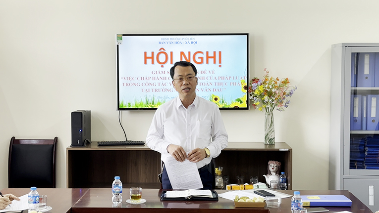 Phát biểu kết luận buổi giám sát, đồng chí Bùi Lâm Hiển - Phó Trưởng Ban Văn hóa - Xã hội HĐND phường ghi nhận những nỗ lực của trường mầm non Văn Đẩu trong việc chấp hành quy định của pháp luật trong công tác đảm bảo vệ sinh an toàn thực phẩm.