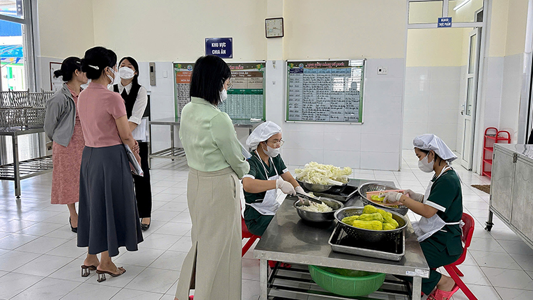Ban Văn hóa - Xã hội HĐND phường khảo sát thực tế bếp ăn bán trú tại trường Mầm non Văn Đẩu