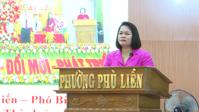 Đồng chí Bùi Thị Tuyết Mai - Bí thư Đảng ủy, Chủ tịch HĐND phường quán triệt, tuyên truyền Nghị quyết Đại hội Đảng bộ phường Phù Liễn lần thứ I, nhiệm kỳ 2025 - 2030; chương trình hành động của Ban Chấp hành Đảng bộ phường thực hiện Nghị quyết Đại hội lần thứ I Đảng bộ phường