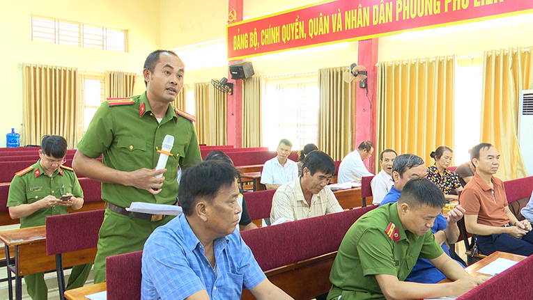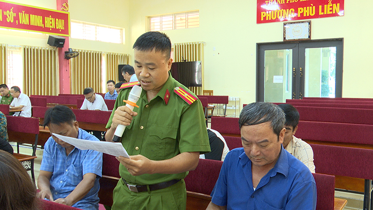 Đại diện các tổ dân phố, Cảnh sát khu vực phát biểu ý kiến tại hội nghị