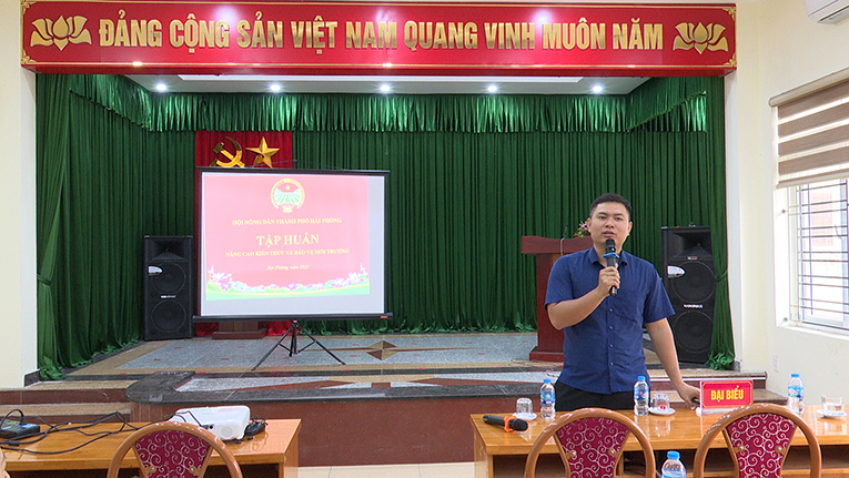 Đồng chí Bùi Mạnh Hà – Chuyên viên Ban Công tác nông dân, Hội Nông dân TP Nâng cao kiến thức bảo vệ môi trường, kỹ thuật phân loại, xử lý rác thải hữu cơ thành phân bón tại hộ gia đình