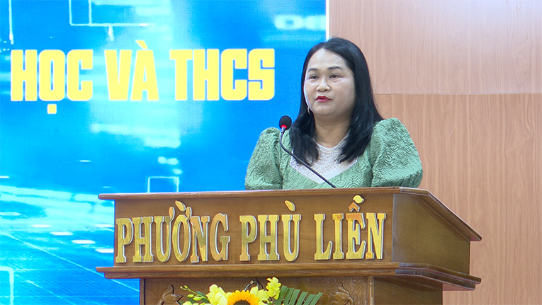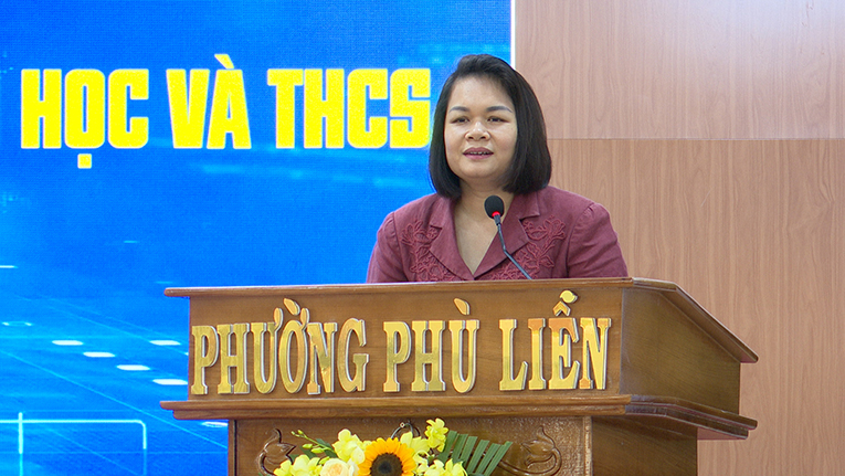 Phát biểu tại hội thảo, đồng chí Bùi Thị Tuyết Mai – Bí thư Đảng ủy, Chủ tịch HĐND phường nhấn mạnh: cần chú trọng đào tạo kĩ năng số cho học sinh, hướng tới xây dựng công dân số, đòi hỏi sự phối hợp chặt chẽ giữa nhà trường, gia đình và xã hội. Việc đào tạo, phổ cập kỹ năng số trong nhà trường không chỉ là nhiệm vụ của từng giáo viên, mà là trách nhiệm chung của toàn thể hội đồng sư phạm, cần được lồng ghép thường xuyên trong mọi hoạt động nhà trường. Mỗi thầy cô giáo phải trở thành người có kỹ năng số vững vàng, vận dụng và hoạt động giảng dạy hàng ngày, lan tỏa tinh thần chuyển đổi số đến học sinh và cộng đồng.
