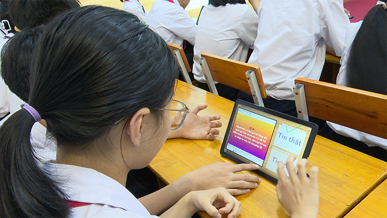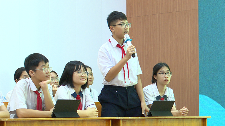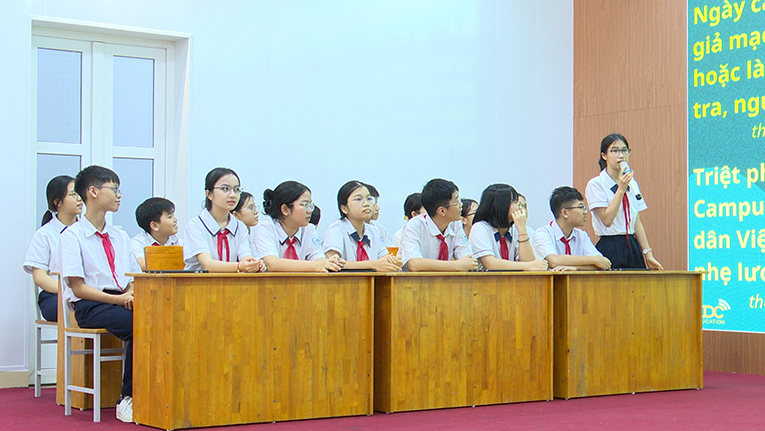 Đặc biệt, Tiết dạy mô hình hóa đã tạo điểm nhấn sinh động cho chương trình, thể hiện rõ cách thức chuyển đổi số hiện thực hóa trong lớp học. Thay vì dạy – học theo cách truyền thống, tiết học được thiết kế dựa trên nền tảng công nghệ số, bài giảng trình chiếu sinh động, học sinh tương tác trực tiếp qua thiết bị thông minh, dữ liệu học tập được phân tích theo thời gian thực.