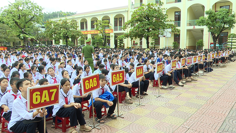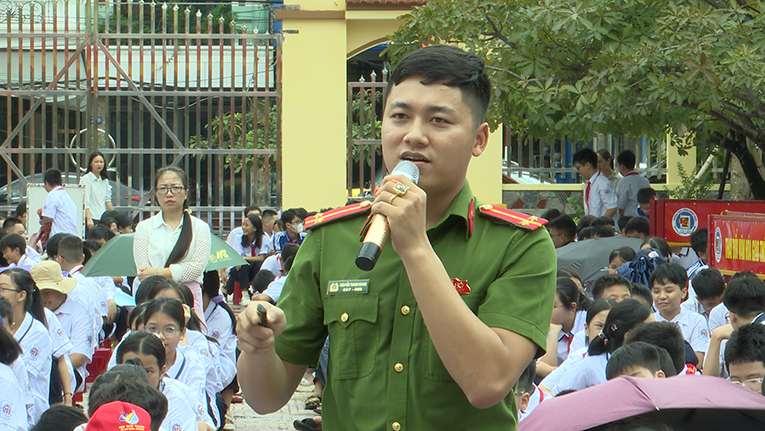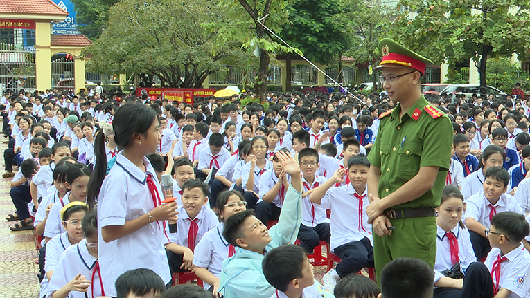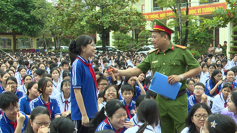 Hơn 2.000 học sinh trường THCS Lương Khánh Thiện được tuyên truyền về Luật Giao thông đường bộ, Luật An ninh mạng và phòng chống ma túy học đường