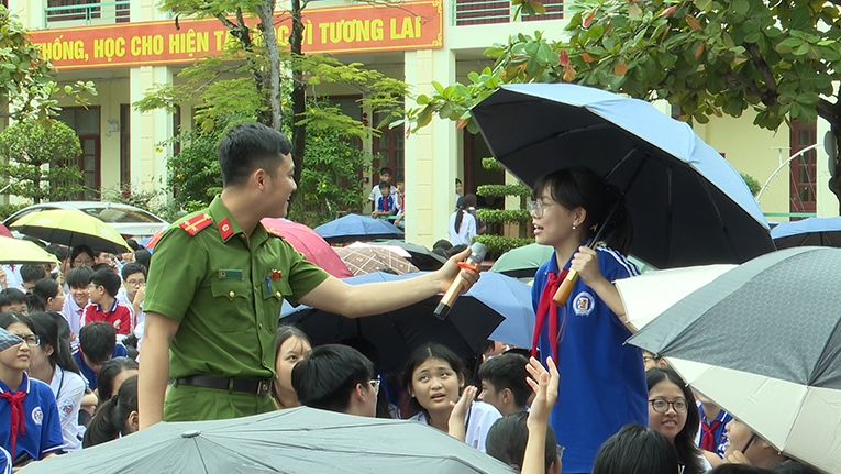 Trong chương trình, các báo cáo viên của Công an phường đã mang đến nhiều nội dung gần gũi, thiết thực và phù hợp với lứa tuổi học sinh như: an toàn giao thông, an ninh mạng và phòng chống ma túy học đường. Không chỉ dừng lại ở việc cung cấp kiến thức pháp luật, buổi tuyên truyền còn lồng ghép nhiều tình huống minh họa sinh động, gắn với đời sống thực tế, giúp học sinh dễ tiếp thu và vận dụng trong quá trình học tập, sinh hoạt hàng ngày.