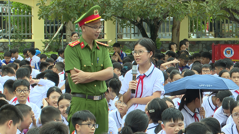 Ở chuyên đề an toàn giao thông, các em được nhắc nhở, hướng dẫn cụ thể về việc tuân thủ luật khi đi bộ, đi xe đạp, xe đạp điện; ý thức đội mũ bảo hiểm đúng quy định; kỹ năng tham gia giao thông an toàn, văn minh. Với chuyên đề an ninh mạng, học sinh được cảnh báo những nguy cơ tiềm ẩn trên Internet, mạng xã hội; cách nhận diện, phòng tránh thông tin xấu độc, lừa đảo trực tuyến. Riêng nội dung phòng chống ma túy học đường, cán bộ công an đã cung cấp cho các em kiến thức nhận biết các loại ma túy, thủ đoạn lôi kéo học sinh tham gia, đồng thời nhấn mạnh hậu quả nghiêm trọng đối với sức khỏe, nhân cách và tương lai.