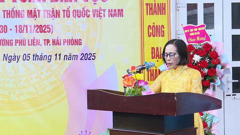 Bà Bùi Thị Thiệm – Tổ trưởng tổ dân phố biểu dương các cá nhân có nhiều đóng góp trong thực hiện cuộc vận động “Toàn dân đoàn kết xây dựng nông thôn mới đô thị văn minh” năm 2025