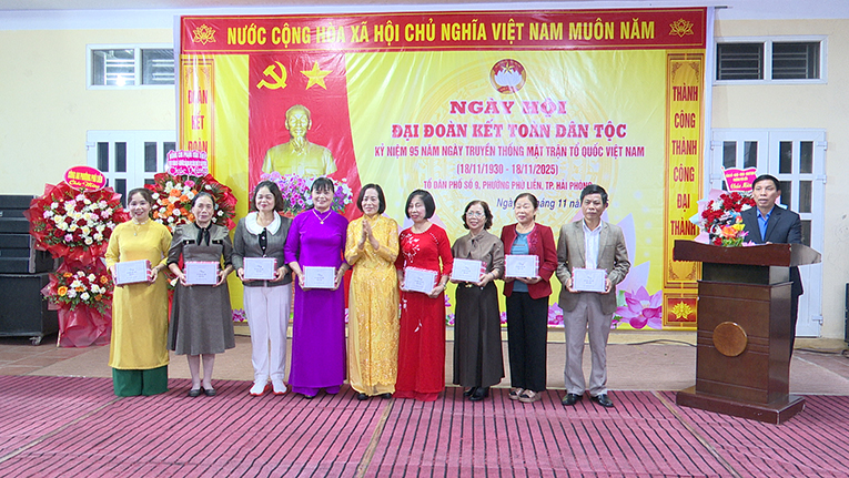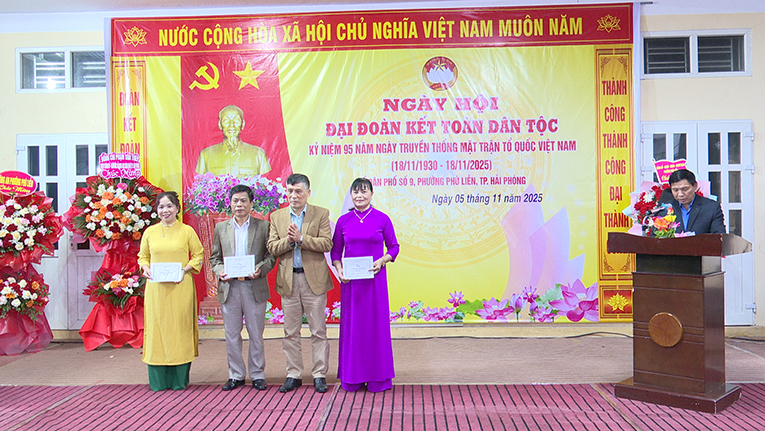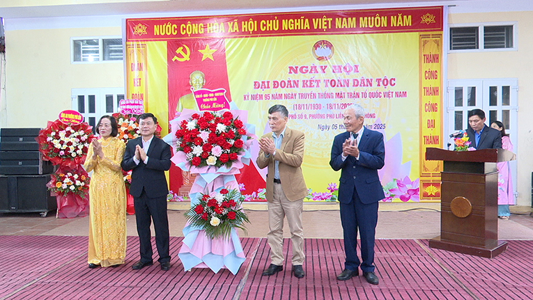 Chiều 05/11, tổ dân phố số 9 tổ chức ngày hội Đại đoàn kết toàn dân tộc kỷ niệm 95 năm ngày truyền thống Mặt trận Tổ quốc Việt Nam (18/11/1930-18/11/2025). Đây là tổ dân phố đầu tiên trên địa bàn phường tổ chức ngày hội Đại đoàn kết toàn dân tộc năm 2025.