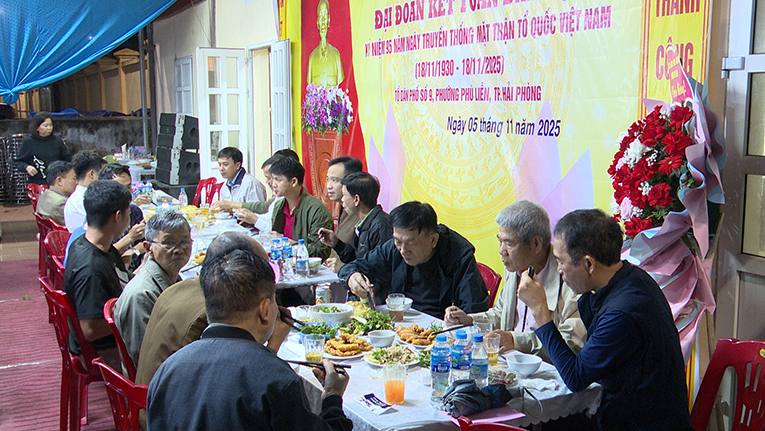 Cũng trong dịp này, các hộ dân trong tổ cùng tham gia bữa cơm “Đại đoàn kết”, chia sẻ niềm vui, tình cảm gắn bó, góp phần làm cho Ngày hội thêm ý nghĩa.