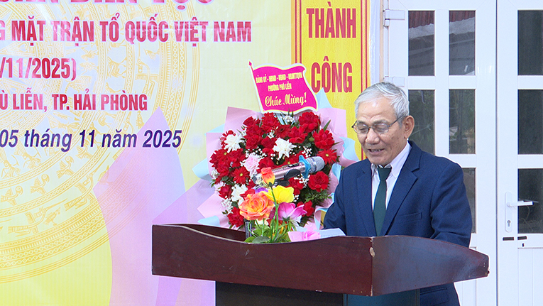 Ông Phạm Văn Chung – Trưởng ban công tác Mặt trận tổ dân phố trình bày Diễn văn kỷ niệm 95 năm Ngày Truyền thống Mặt trận Tổ quốc Việt Nam
