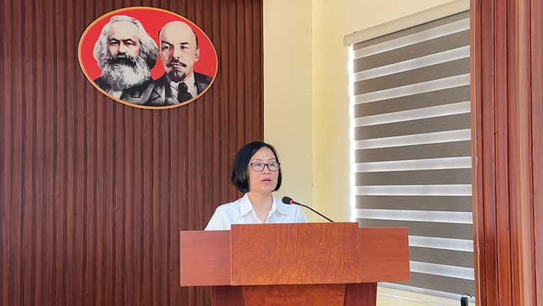 Đồng chí Nguyễn Thị Hải Lan – Trưởng Ban Thanh tra nhân dân báo cáo kết quả hoạt động của ban thanh tra nhân dân năm học 2024-2025, kế hoạch hoạt động của ban thanh tra nhân dân năm học 2025-2026