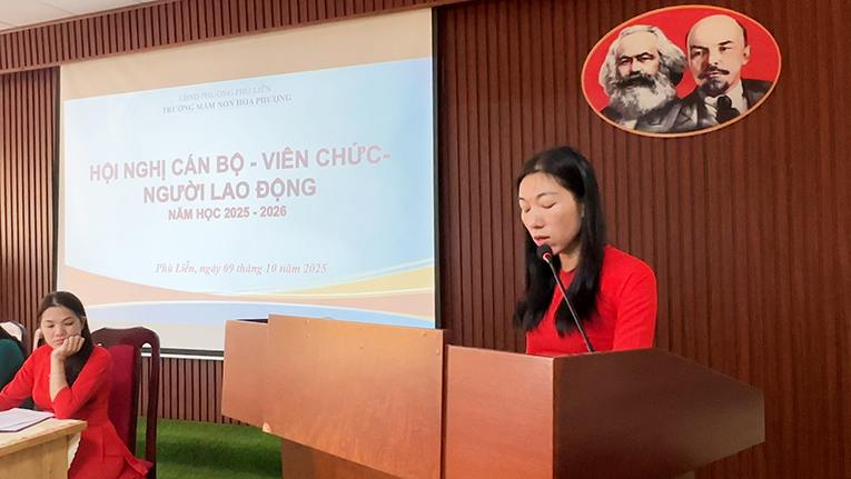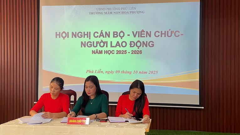 Sáng ngày 09/10, Trường Mầm non Hoa Phượng tổ chức Hội nghị Viên chức – Người lao động năm học 2025–2026. Tới dự có lãnh đạo phòng Văn hóa – Xã hội phường.