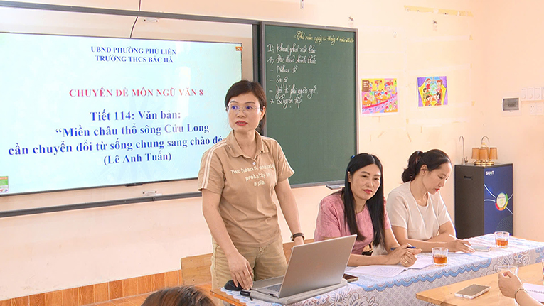 Trường THCS Bắc Hà tổ chức chuyên đề môn Ngữ văn lớp 8 với chủ đề: Tích hợp phát triển năng lực số cho học sinh THCS trong môn Ngữ văn 8 qua tiết Đọc – Hiểu văn bản “Miền châu thổ sông Cửu Long cần chuyển đổi từ sống chung sang chào đón lũ”.