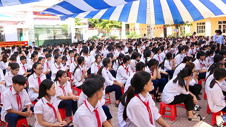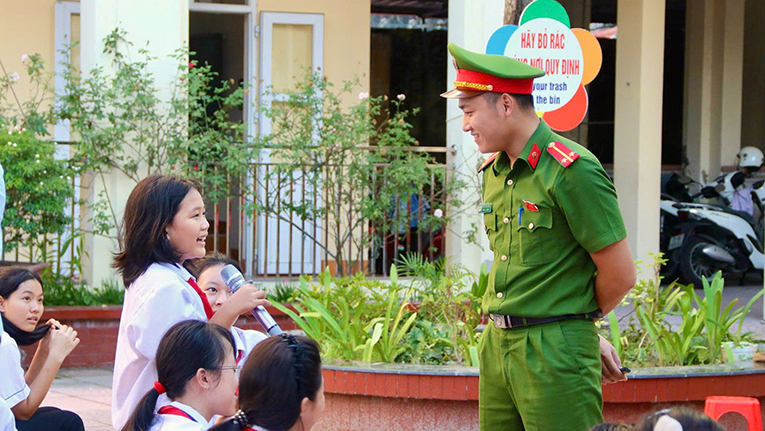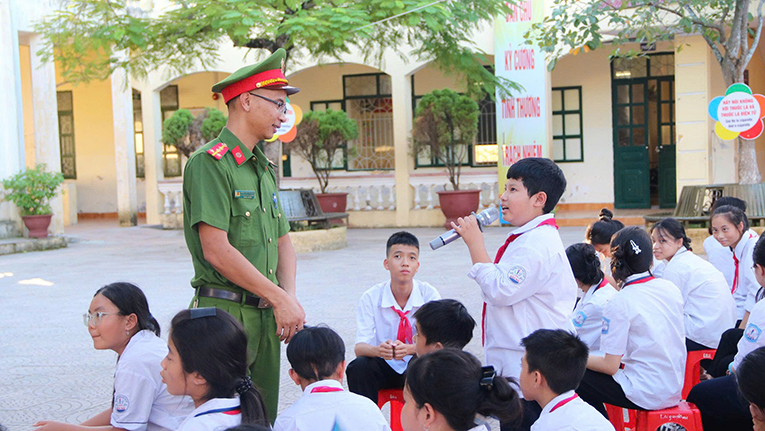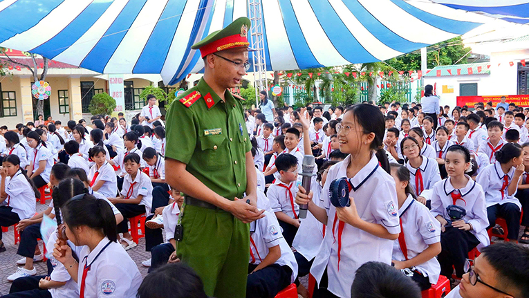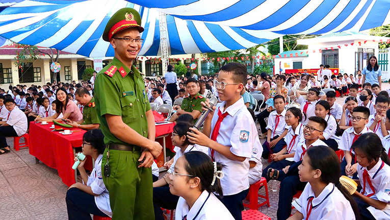 Chương trình do nhà trường phối hợp với Công an phường triển khai, nhằm giúp học sinh trang bị kiến thức cần thiết, nâng cao ý thức chấp hành pháp luật và hình thành kỹ năng tự bảo vệ bản thân. Bằng cách trình bày sinh động, gắn với những tình huống thực tế, buổi tuyên truyền đã thu hút sự tham gia sôi nổi của học sinh toàn trường.