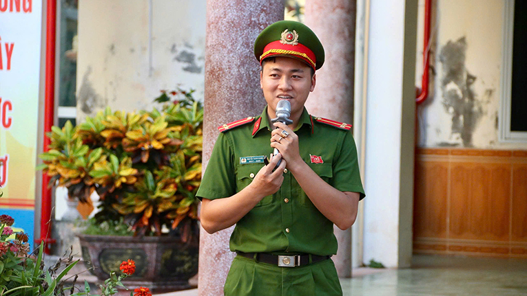 Đại diện Công an phường tuyên truyền an toàn giao thông, an ninh mạng, phòng chống ma túy và bạo lực học đường