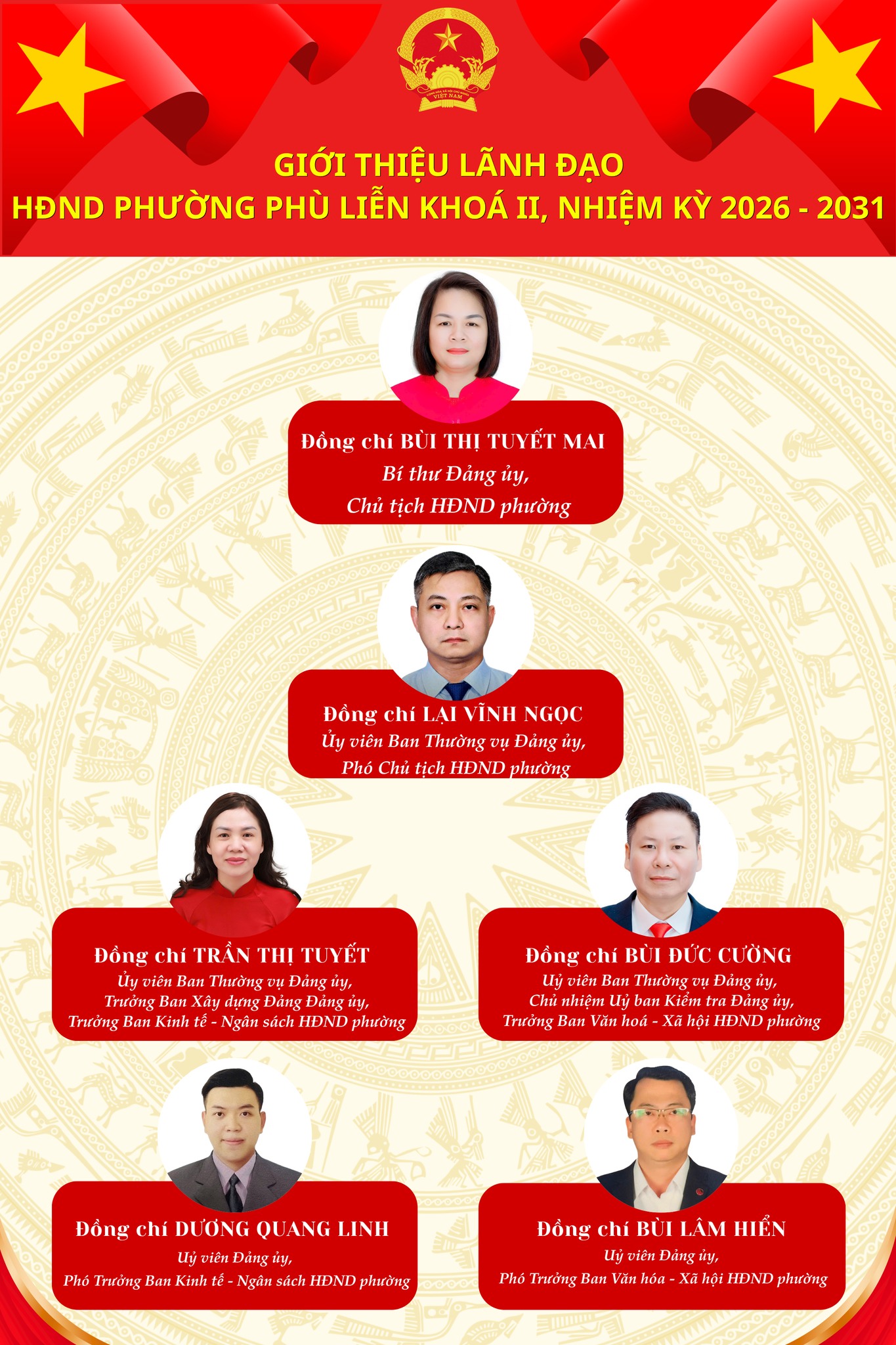Lãnh đạo Hội đồng nhân dân phường Phù Liễn Khóa II, nhiệm kỳ 2026 - 2031