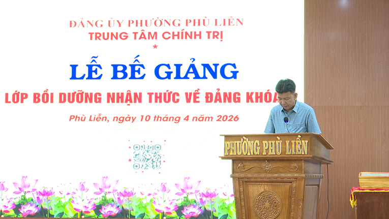 Sáng 10/4, Trung tâm Chính trị phường tổ chức bế giảng lớp Bồi dưỡng nhận thức về Đảng khóa 2. Tới dự có đồng chí Nguyễn Thiện Kim – Phó Bí thư Thường trực Đảng ủy phường Kiến An. Đại biểu phường Phù Liễn có đồng chí Trần Thị Tuyết – Uỷ viên Ban Thường vụ Đảng ủy, Trưởng Ban Xây dựng Đảng Đảng ủy phường. Cùng dự có lãnh đạo Ban Xây dựng Đảng Đảng ủy phường Kiến An, Trung tâm Chính trị phường.